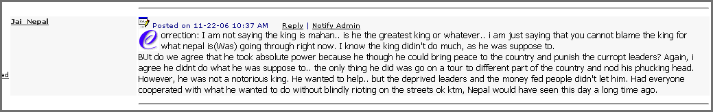 i dont give a shit about that blog owner or gyanendra.it is written in that site,it is not a news website,but is a video blog.