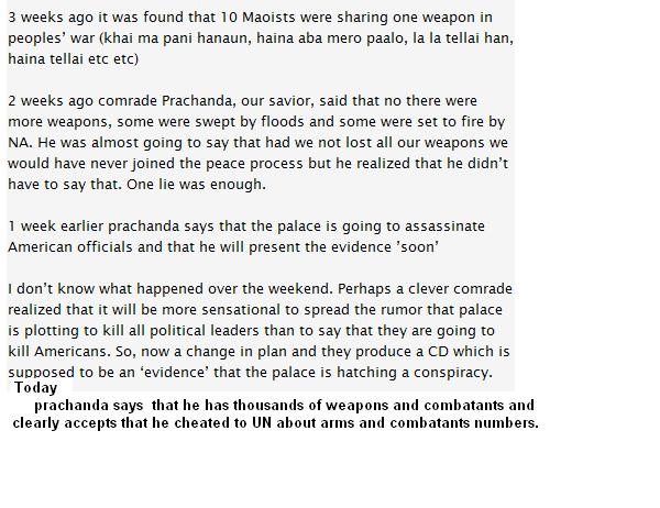 He said his party discovered this while investigating the palace's conspiracy to kill US officials posted in Nepal and pin the blame on the Maoists. Maoist chairman Prachanda had spoken about the 'palace conspiracy' few days earlier.
