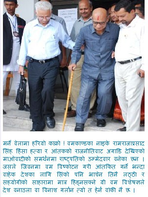 Bloody all parties have pushed their puppets for the Prez and VP. I have never been a Maoist supporter, in fact never supported any political party but would certainly like to see a warrior like Dr. Baburam Bhattarai take the lead. Hez the only one who can control Prachanda, Girija, Madhav Kr. Nepal, the Madhesi leaders, India and the States.